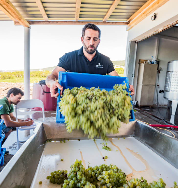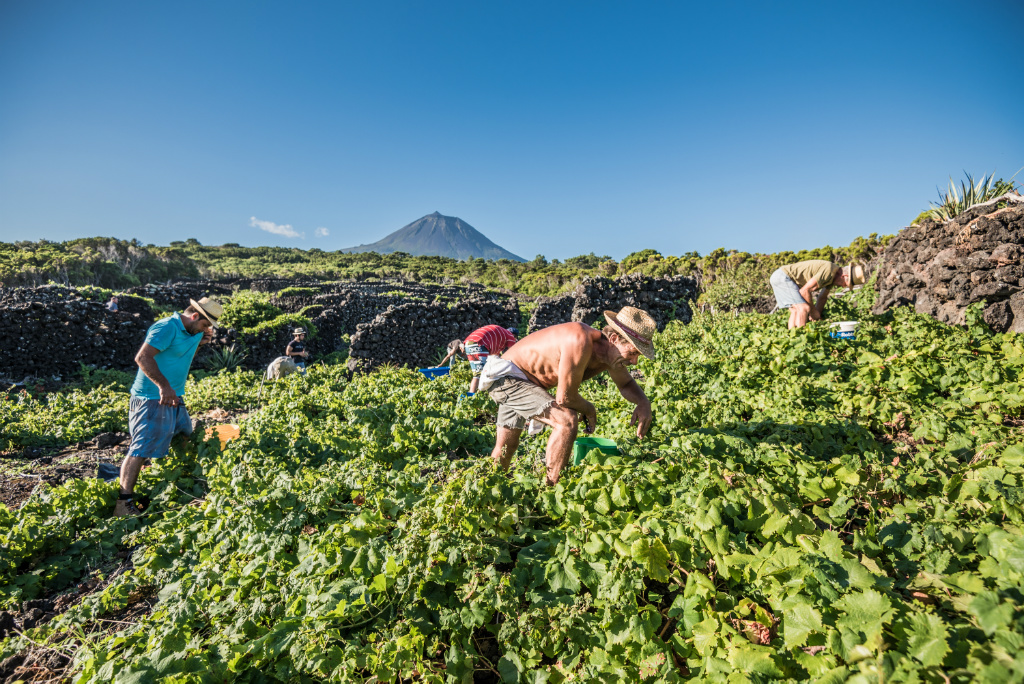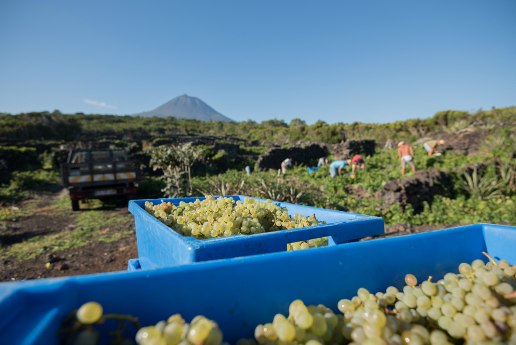 Just one short decade after launching Fitapreta Vinhos in sunny Alentejo, António and two other partners founded the Azores Wine Company on the island of Pico (a UNESCO World Heritage Site) after becoming inspired by their shared work recovering the indigenous Terrantez do Pico varietal—not to mention António’s many childhood trips to his father’s Azorean homeland. The initial bottling of Terrantez do Pico made a splash in the wine world, receiving a top score from Wine Spectator, and a mention in their article “Breaking the Mold” in 2016. António and his partners own 100 hectares of extremely low-yield, walled vineyards (primarily on Pico) and purchase fruit from an additional 30 hectares across the archipelago, from regions such as DOP Graciosa, São Miguel, and others. These sites range from sea level to 500 meters in altitude, with the oldest vines averaging up to 80 years. It is from this stony volcanic terroir that according to Antonio, “these singular, saline wines are born, or should we say, erupt.” On cold and wet Pico Island, vines struggle to escape the volcano’s rain shadow grasping for sunlight along the island’s edge, where 500-year-old volcanic stone walls (known as currais) are all that stand between the plants and dangerously salty Atlantic winds. Making wine on Pico, according to António, is a constant “battle between the sea and the mountain” and he is one of very few who have succeeded in achieving ripeness in red grapes here.