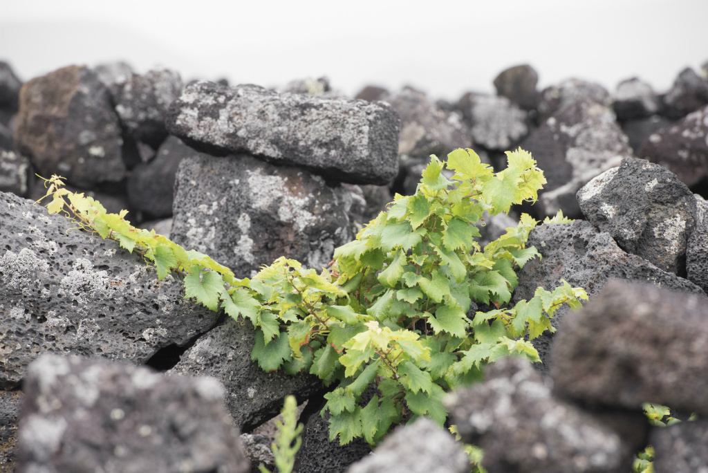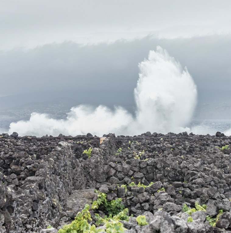 Pico, in the Azores, is about 1000 miles off the coast of Portugal. It is dominated by the volcano Ponta do Pico, Portugal’s highest mountain. The soil is entirely black basalt, which puts enormous stress on the vines, lowering yields. Vines are the only crop to speak of on Pico, as other plant life has a difficult time surviving. The average elevation of the vineyards is sea level (0m). Temperature from April to October is 60-70 degrees Fahrenheit (15-21 C), with annual rainfall of 1200mm (47”).