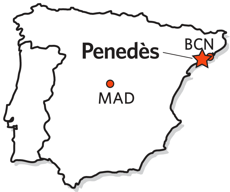 The vineyards are located in Zone 5 in northeastern Spain, a few miles south of Barcelona in the Alt (High) Penedés subregion of the Penedés DO. Overlooking the Mediterranean Sea at 176 meters (577 ft.) elevation, the vineyards and winery are located in the town of Vilafranca del Penedès. The ancient Greeks introduced vines to this area prior to the 4th Century BC. The topsoil is limestone and sand; the latter provides good drainage into the deeper water-retaining layers of clay subsoil and nourishes the vine when necessary. The root systems of the vines are able to penetrate up to 10 meters (about 30 feet) through the deep soil to search for water, particularly in times of drought. The soils are poor in organic matter, resulting in lower yields per vine and greater skin-to-juice ratio per berry, which produces more intense and concentrated grape flavors. The area’s climate has an average temperature from April-October of 66.6ºF, which is higher than the standard in Zone 5 (63ºF), and has a yearly rainfall of 24 inches. The higher temperatures bring higher levels of sugar while the elevation and rainfall give greater acid levels. The ripeness and acidity balance each other and improve the fresh aromas of the wines. The temperatures in Penedés are higher than those in Priorat and Montsant but lower than those in the Empordá and Terra Alta regions.