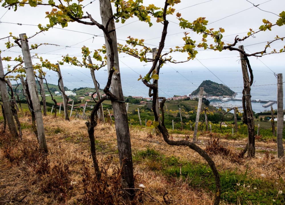 90% Hondarrabi Zuri, 10% Chardonnay. Sustainably farmed vines planted in the 1920s to clay and limestone soils, 1,500 ft. from the ocean.