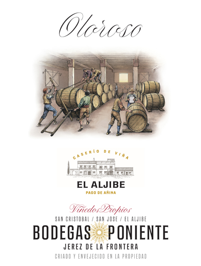 << Previous wine Next wine >>This rare Oloroso sherry is named after the Poniente winds, cool Atlantic western winds. El Aljibe. Poniente sherries are the product of the thoughtful blending of precious, treasured soleras and criaderas from the 18th and 19th centuries, refreshed in the traditional method each year with wine from our own organically farmed estate vineyards (San Cristóbal, San José y El Aljibe) in the Pago Añina, one of only three Pago sites in Jerez designated as Jerez Superior. The wines are produced and aged in our historical estate, a restored house tucked among the vines of El Aljibe.